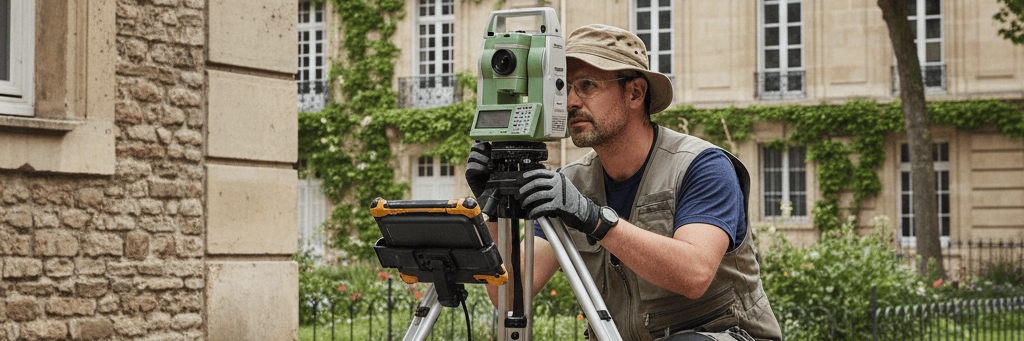 L’outil emblématique du topographe moderne est la station totale. Cet instrument électronique combine un théodolite (pour mesurer les angles) et un distance-mètre (pour mesurer les distances). Les stations totales utilisées par les professionnels à Saint-Germain-en-Laye permettent des mesures avec une précision de l’ordre du millimètre, essentielles dans le contexte urbain dense de cette ville historique.